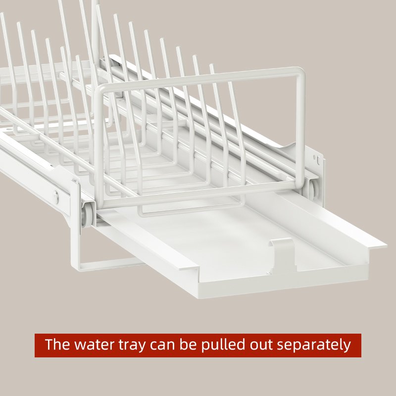 Fabricado en acero al carbono de alta resistencia, el escurridor es duradero, anti-óxido y fácil de limpiar. Su diseño desmontable facilita la higiene diaria, mientras que la bandeja de drenaje independiente recoge el agua y evita charcos sobre la superficie. Simplemente extrae la bandeja, vacía y vuelve a colocar: así tu cocina se mantiene seca y ordenada.